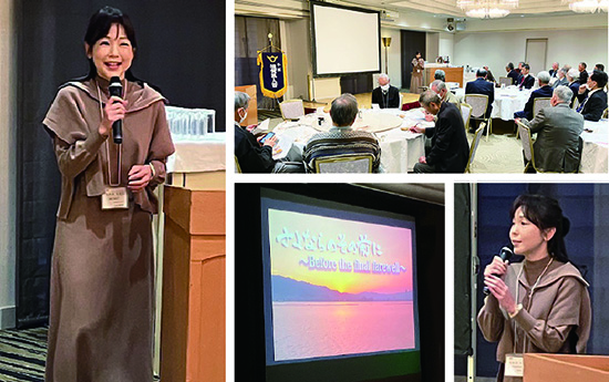| 会長からホテルのホール責任者へ感謝の印を贈った | 2025滋賀国スポを脇阪監事からもアピール | 中野憲司氏からは東京湾クルーズの案内が | |
