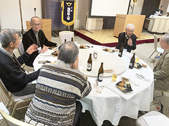 | ふるさと近江の歌がBGMで流れる中、各テーブルでは和やかな談笑が続いていた | ||